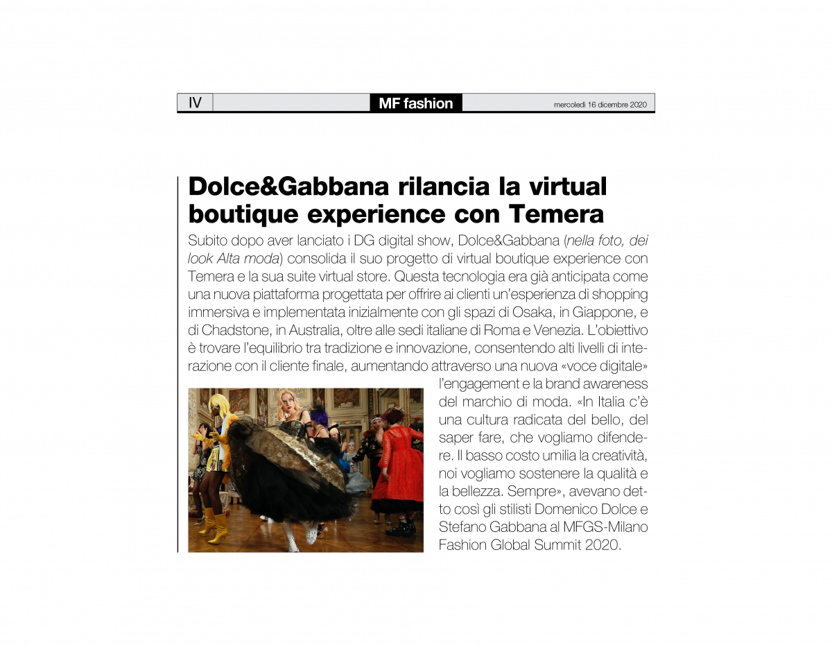Dolce&Gabbana scommette sulla virtual boutique experience con Temera